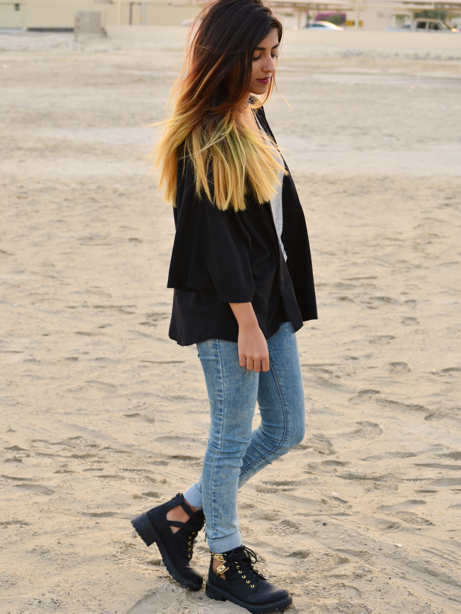 This kind of outfit is the perfect piece for transitioning to fall, when the weather isn't too cold yet, but getting there – like Bahrain. The crochet back of the kimono gives out the boho feel, which also allows some cool air to seep through the back during a hot summer day. It's definitely one of my favorite pieces about this entire outfit.